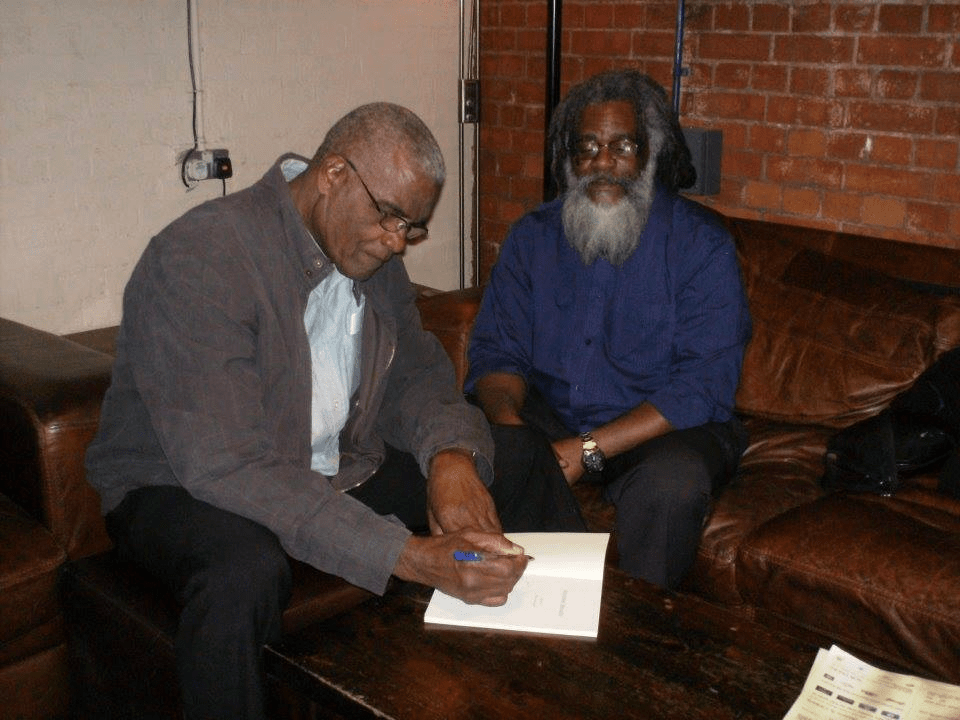 Entrepreneur/ author, Ron Abraham (left) autographs a copy of his book signed to Albert and Tempie Williams (2010- London) (Photo: Tempie Williams)