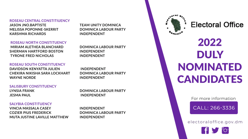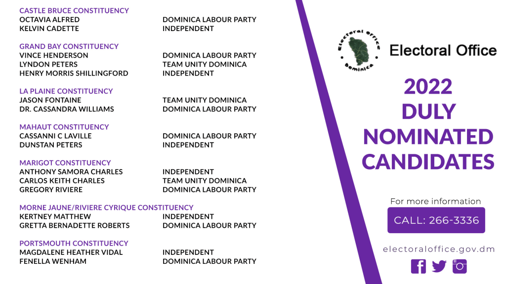 The Electoral Office in Dominica on Saturday has declared the returns of the November 18th, Nomination Day.