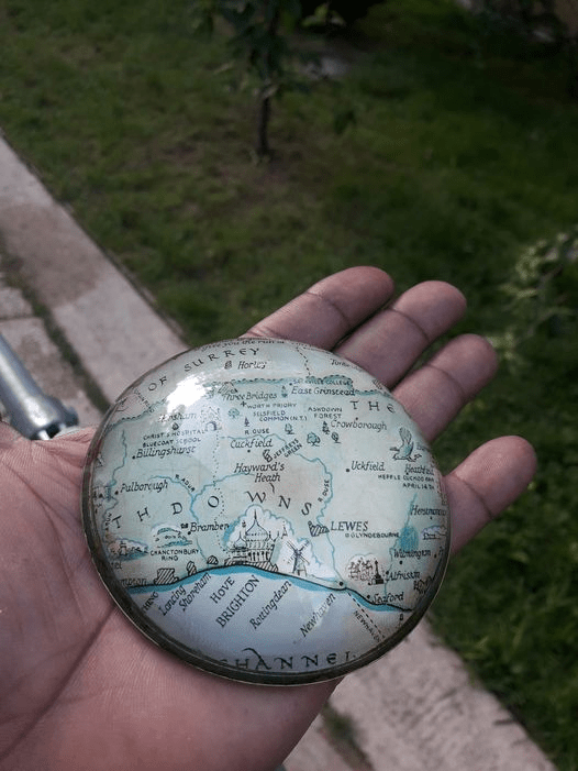 In my quest to uncover the origins and significance of the paperweight, I have reached out to various experts and institutions. The Sussex Flag Facebook page confirmed that the map featured on the paperweight is indeed the same as a postcard map of Sussex drawn by M.F. Peck and published by J Salmon Ltd. This validation has added another layer of authenticity to my findings.