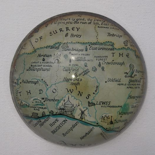 In my quest to uncover the origins and significance of the paperweight, I have reached out to various experts and institutions. The Sussex Flag Facebook page confirmed that the map featured on the paperweight is indeed the same as a postcard map of Sussex drawn by M.F. Peck and published by J Salmon Ltd. This validation has added another layer of authenticity to my findings.